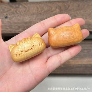 檀木榉木雕刻法棍猫搭配蝴蝶结配件DIY文玩项链挂件饰品配件批发