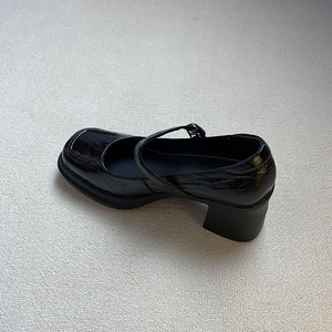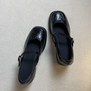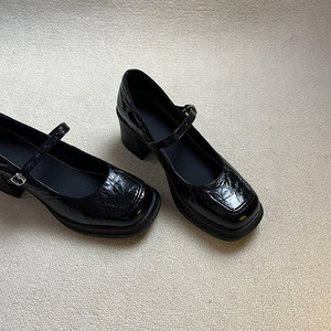 羊皮版~新款高跟一字带玛丽珍鞋女浅口方头通勤静音单鞋