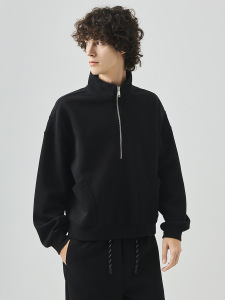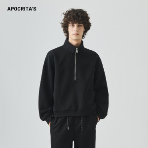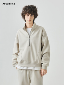 APO男装|跨境卫衣男秋季潮牌拼接宽松运动休闲半拉链立领长袖上衣