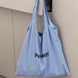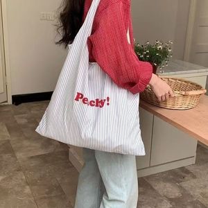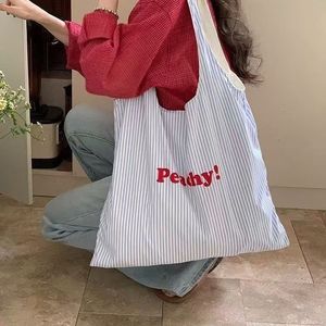 2025韩系大容量简约条纹托特帆布包ins慵懒风韩范十足批发速卖通