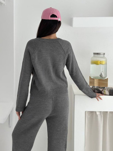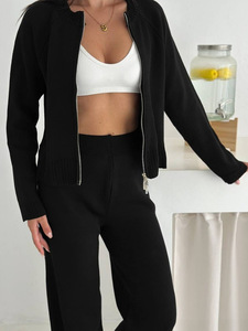 老钱风纯色毛衣两件套女装长袖修身拉链上衣外套高腰直筒休闲裤女