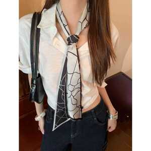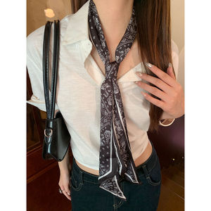 高级感腰果花长条丝巾女2025新款斜角领巾系腰巾配饰气质薄款围巾