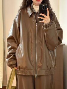 美式复古美拉德PU皮衣外套女2025春秋新款高街宽松机车上衣夹克潮