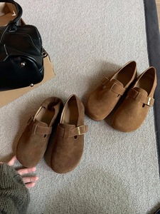 羊皮版~真皮一脚蹬可踩跟扣带单鞋懒人勃肯女鞋博肯乐福鞋小皮鞋
