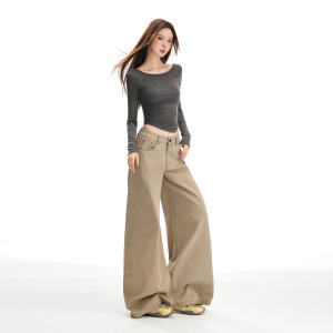 25秋季新款 洗褪高腰显瘦宽松大阔腿休闲裤女牛仔裤