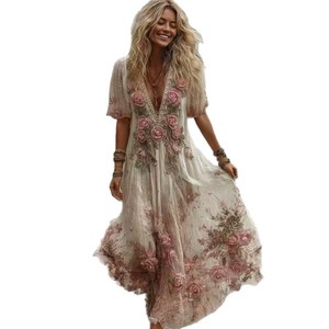 2025独立站爆款欧美跨境女装亚马逊v领连衣裙