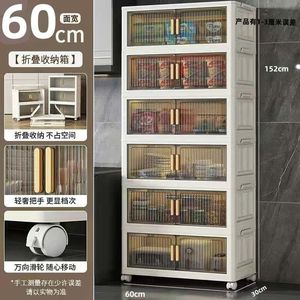 多层收纳柜整理柜子储物柜靠墙零食置物架家用衣物收纳箱折叠带轮
