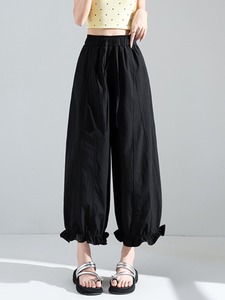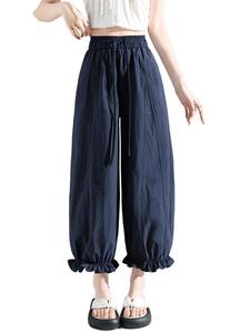 藏青色边花苞裤女2025新款夏季薄款裤子透气速干九分裤灯笼裤