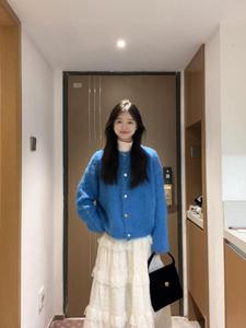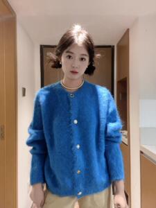 克莱因蓝色针织开衫女2025新款秋冬高级感软糯毛绒加厚毛衣外套潮