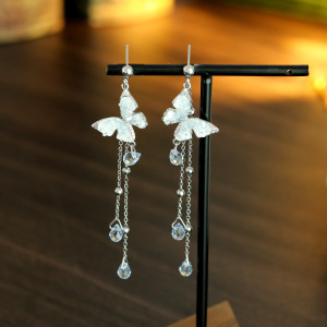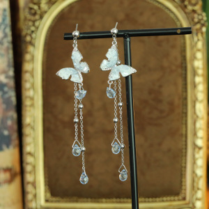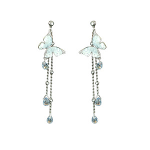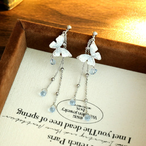 超仙浅蓝水晶蝴蝶水滴流苏耳环轻奢高级感显瘦耳钉森系耳饰设计感