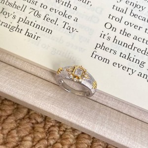 纯银S925意大利拉丝工艺方钻星芒戒指气质轻奢高级感百搭叠戴指环