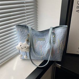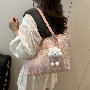 时尚托特包流行大容量女2025新款简约可爱挂件质感上班通勤单肩包