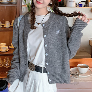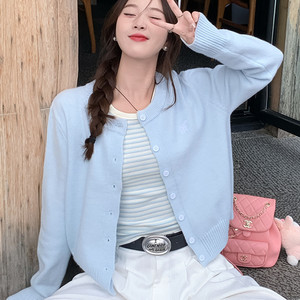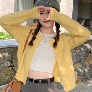 夏珍法式小香风针织浅黄色圆领开衫女2025春秋季新款毛衣外套上衣