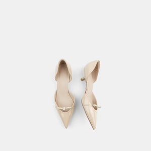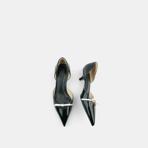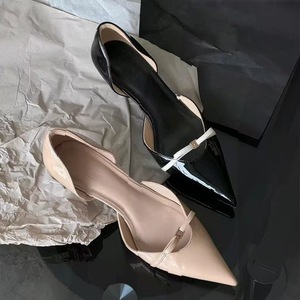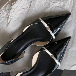 打版中复古法式尖头蝴蝶结金属扣气质包头中空浅口细跟凉鞋单鞋女