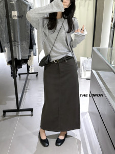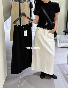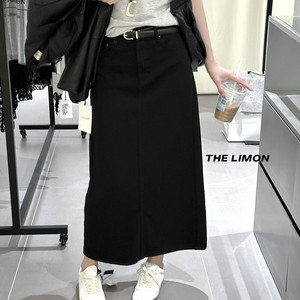 thelimon柠檬绿茶高腰显瘦直筒牛仔裙女2025秋季新款后开叉半身裙