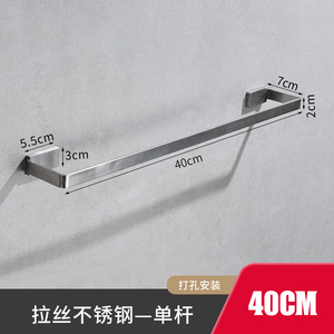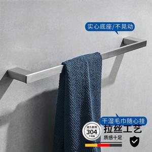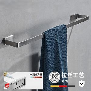 浴室304不锈钢拉丝毛巾架亚光单杆毛巾杆加长毛巾挂卫生间挂毛巾