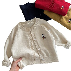 儿童毛衣秋男童日系卡通米Q纯色针织开衫宝宝小童毛线衫小童外套