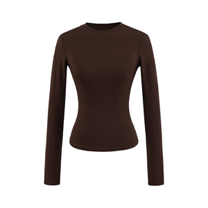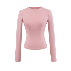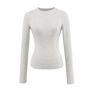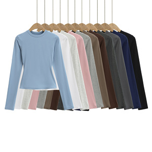 纯色圆领长袖T恤通勤时尚百搭正肩修身叠穿内搭打底衫上衣女秋季