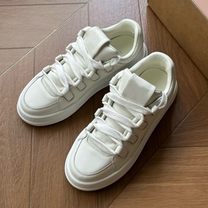 莞产!Miu小白鞋女厚底真皮系带增高圆头舒适休闲百搭简约运动鞋