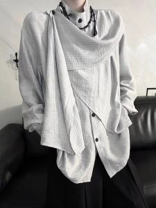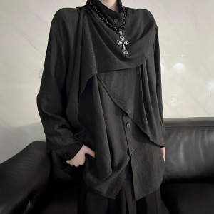 潮流复古高级感衬衣不规则拼接设计感小众衬衫简约新款新中式上衣