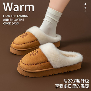 秋冬厚底加绒拖鞋女毛绒拖鞋棉家居棉鞋防滑保暖舒适居家毛拖鞋男
