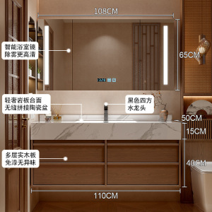 110CM岩板无缝陶瓷盆+智能收纳镜柜