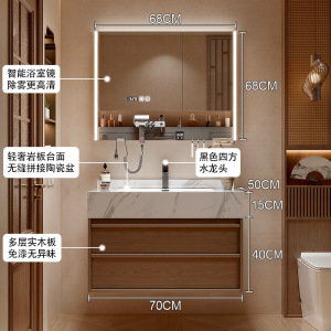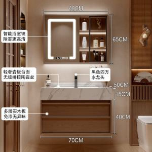 70CM岩板无缝陶瓷盆+智能收纳镜柜