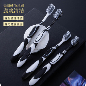 硬毛祛渍牙刷家用清洁牙刷中硬毛耐用牙刷去烟渍去污垢成人牙刷
