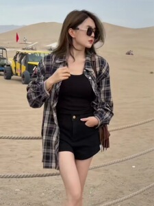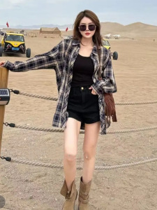 慵懒风条纹格子衬衫女早秋穿搭2025新款休闲洋气显瘦外套开衫上衣
