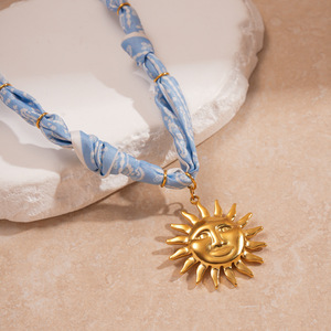 不锈钢布艺太阳花吊坠项链欧美复古个性锁骨链气质高级感项饰饰品