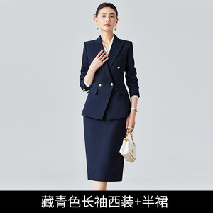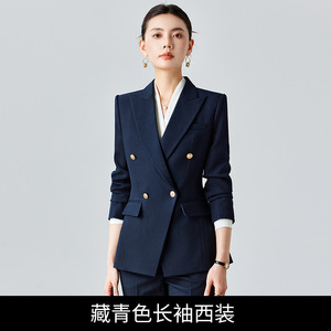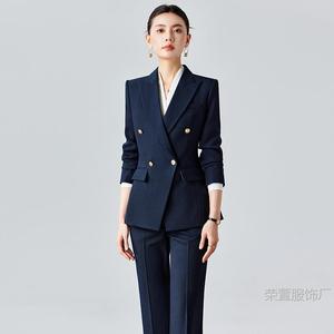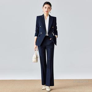 高级感藏青色西装套装女考公正装双排扣气质职业正装面试西服春款
