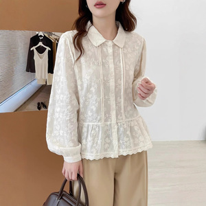 82297甜美减龄绣花收腰长袖小衫 女2025秋装新款显瘦开衫上衣