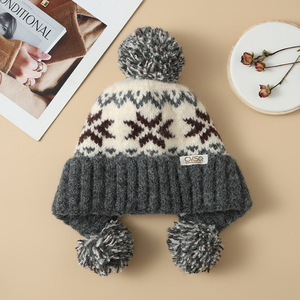 甜美可爱雪花圣诞毛线帽冬天加绒加厚防寒保暖帽户外出行护耳帽新