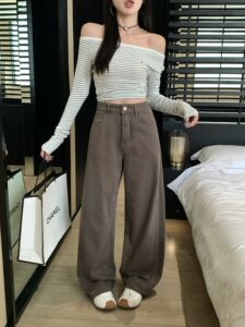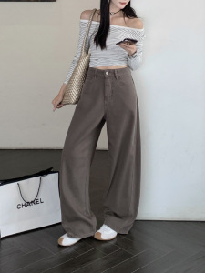 秋上新 美式复古牛仔裤宽松阔腿小个子纯棉休闲裤子弯刀裤女JEANS