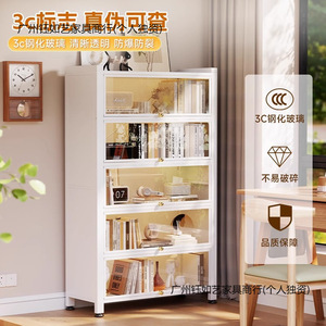家韵钢制书架带玻璃门防尘书柜客厅落地多层储物柜铁皮手办展示柜