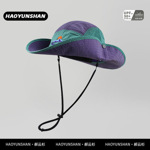 美式双拼色速干渔夫帽子女夏季户外露营大帽檐遮阳防晒钓鱼登山帽