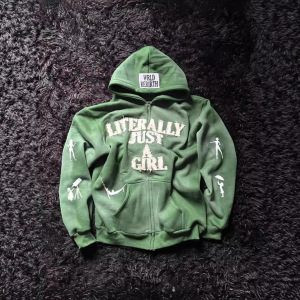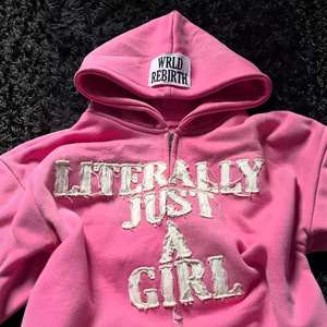 美式Y2K嘻哈字母3D印花连帽衫个性街头男女款宽松拉链开衫上衣