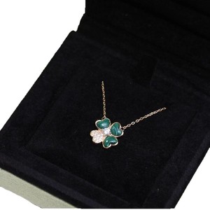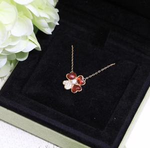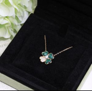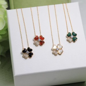 高版本梵家天然白贝母项链爱心幸运草厚金电镀镶钻锁骨链饰品批发