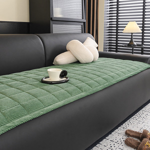 跨境专供纯色毛绒沙发垫客厅皮沙发坐垫加厚固定防滑防尘盖布坐垫