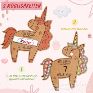 德语版独角兽邀请卡生日派对DIY牛皮纸邀请函儿童派对手绘套装