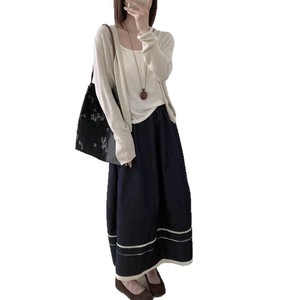 日系文艺范拼接牛仔女宽松高腰显瘦花苞裙半身裙