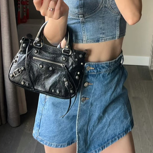 25新款手提托特机车包腋下包铆钉流苏爆裂纹褶皱牛皮单肩斜挎女包