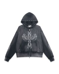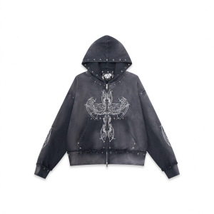 批发跨境秋冬服装2025欧美街头潮流时尚水洗做旧连帽开衫女士