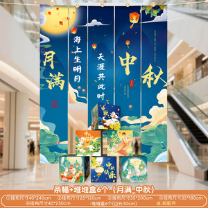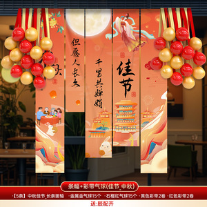中秋节场景氛围布置装饰户外游园会店铺橱窗活动打卡背景挂布条幅