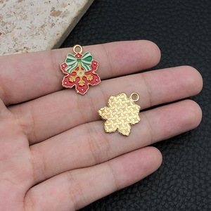 19682-1个红色锌合金滴油kc金圣诞节蝴蝶结雪花22x17mm-1.3g
