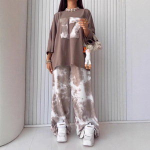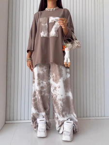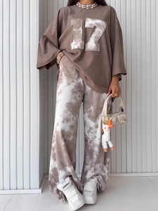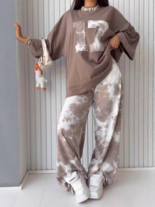 跨境美式甜辣字母扎染卫衣套装亚马逊爆款刺绣休闲宽松卫裤两件套
