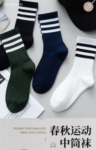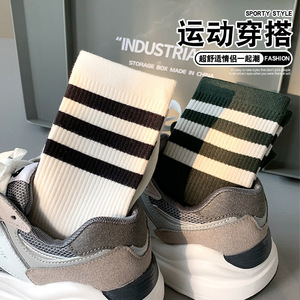 三条杠运动袜子韩版情侣男女可穿棉中长筒袜子条纹韩版学院风ins