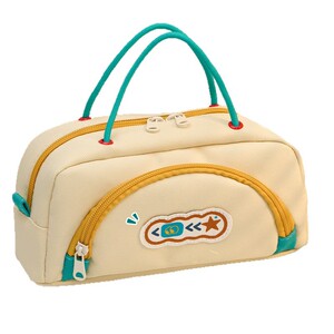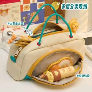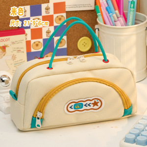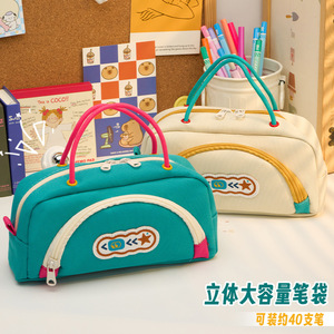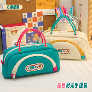 新款可爱手拎笔袋大容量多功能撞色文具包学生铅笔盒杂物化妆收纳