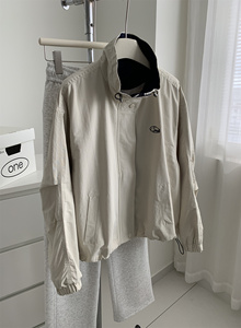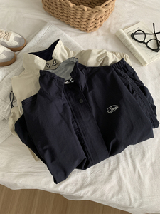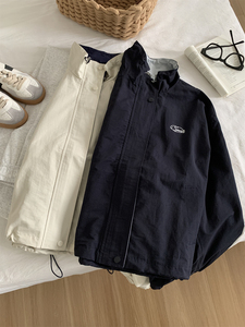 美式复古撞色立领刺绣拉链外套秋季宽松休闲上衣帅气飞行夹克开衫