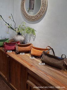 小众设计磨砂真皮腋下包包女vintage中古包复古麂皮绒斜挎包女包